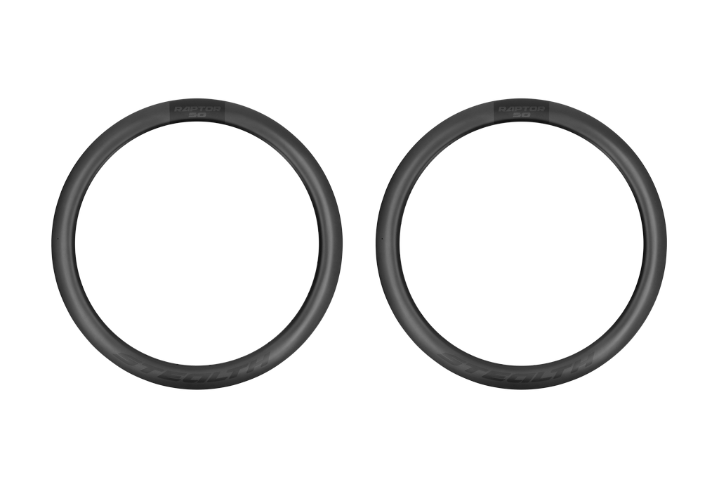 Dit resultaat hebben wij gerealiseerd door uitvoerig te testen, alsmede verbeteren en vernieuwen van onze materialen. Hierbij zijn we geen enkel aspect uit de weg gegaan en gingen we op zoek naar verbetering met dit resultaat tot gevolg. De Raptor 50 is net zoals de Nighthawk 35 vernieuwd naar een Mini Hooked velgbed. Hierdoor ligt de band minder in de velg getrokken en houdt hij zo zijn vorm beter aan. Dit zorgt voor nog meer stabiliteit in de bochten en een betere aansluiting voor het tubeless leggen.